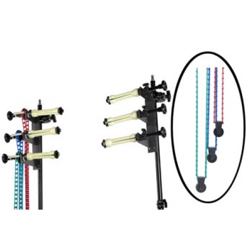 Удобная система установки и подъема рулонных фонов (бумажных, нетканых и т.д.). Количество устанавливаемых в систему рулонов до 3 шт. Может монтироваться, как на стену, так на потолок. Возможна установка на стойки или стойки-распорки через специальные переходники, например RAYLAB RAC-CL24 PRO-CLAMP.