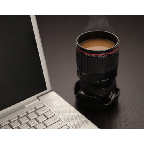Кружки Canon и Nikon являются точной копией фото-объектива, она по совместительству, является еще и термосом - двойные стенки, одна из которых металлическая, сохранят ваш напиток горячим или холодным очень долгое время, так что вы легко можете положить в эту кружку-объектив чашку кофе и мороженное - кофе будет горячим, а мороженное не растает.
